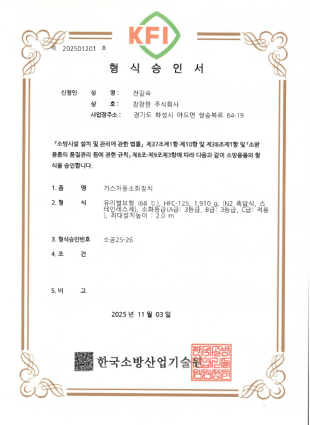 | 소방용품 분류 | 가스자동소화장치 | ||